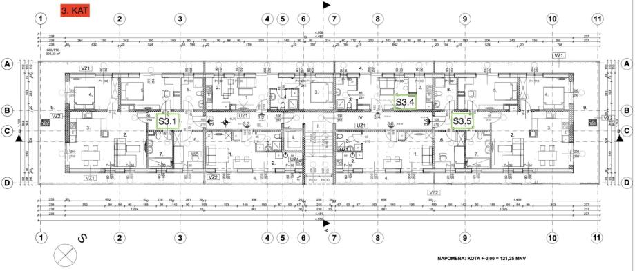 Prodaju se stanovi u zgradi od 32 stana u izgradnji, koja se sastoji od podzemne garaže s parkirnim mjestima, prizemlja, prvog, drugog i trećeg kata.