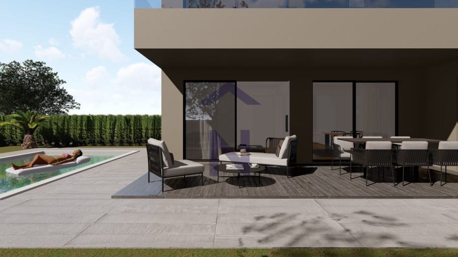 Spavaće sobe imaju izlaz na natkrivenu terasu 21,42m2 (nenatkriveni dio ima 3m2).