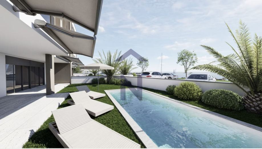 The building is located first row to the sea, close to a peaceful bay and promenade. Well-maintained beaches and the Zaton Holiday Resort are just a 3–5 minute walk away. The city of Zadar is a 20-minute drive, and Zadar Airport (Zemunik) is only 30 minutes away.