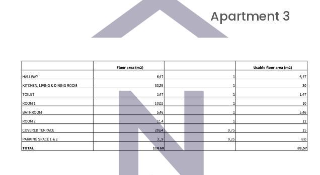 The apartment also includes two outdoor parking spaces measuring 31,9m2 (8m2).