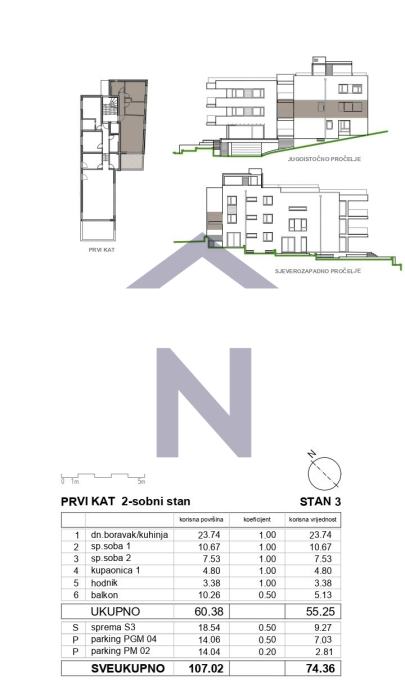 S3 - apartment with a total net area of 125m2, consists of 3 bedrooms, 2 bathrooms, living room with dining area and kitchen, utility room and a terrace with sea view and preparation for a summer kitchen. Split AC is installed in each room for heating and cooling, and there is electric underfloor heating in the bathrooms. It includes one parking space in the garage, one outdoor parking space, and a storage room of 20m2. - 560.000,00 EUR