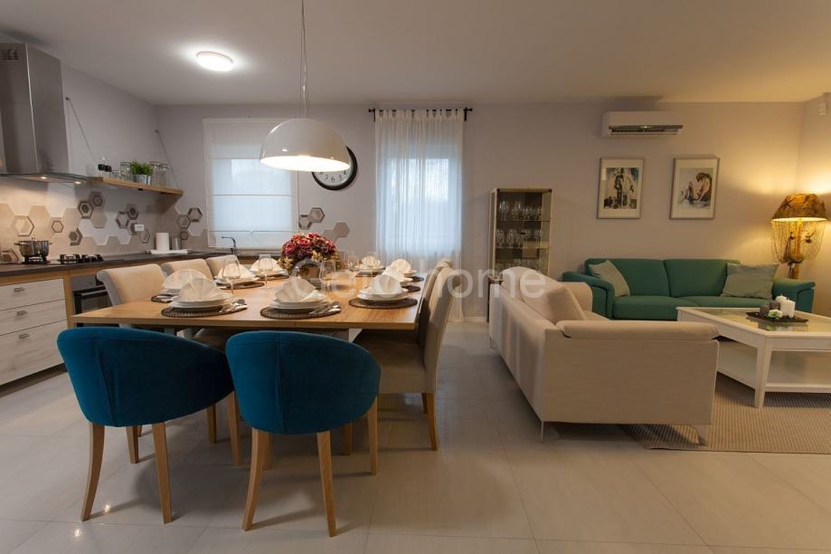 Sastoji se od prizemlja u kojem se nalazi spavaća soba, open space prostor sa kuhinjom, blagovaona, dnevnim boravkom s izlazom na terasu, vešeraj i kotlovnica, ulazni prostor koji vodi u wellnes zonu (sauna i jacuzzi) te podrumski prostor površine 70 m2 koje je moguće urediti po vlastitoj želji.
