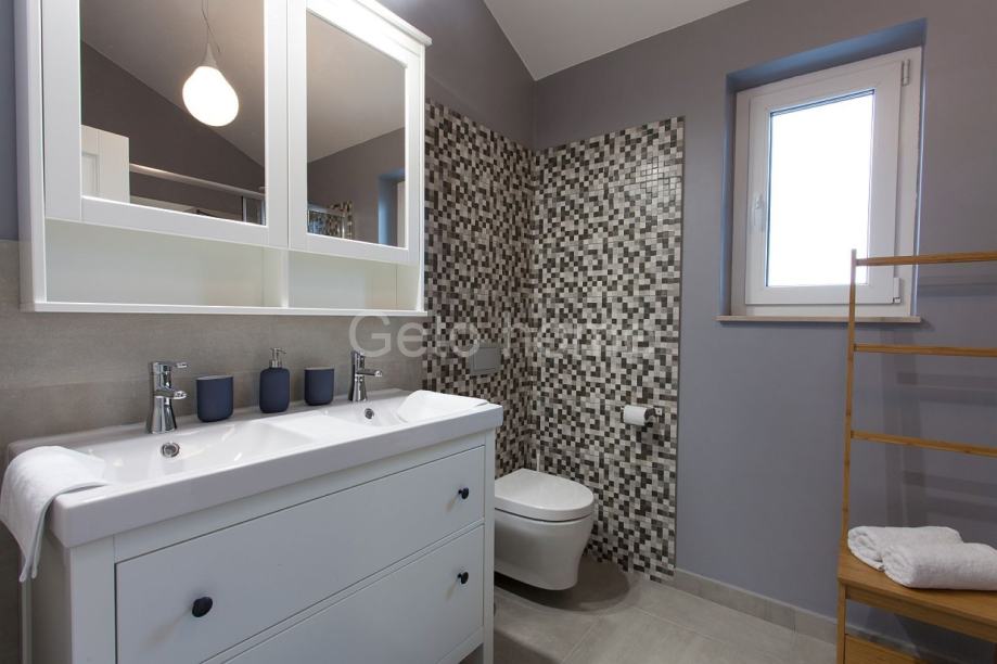 Vila je opremljena visokokvalitetnom keramikom i sanitarijama, PVC stolarijom.