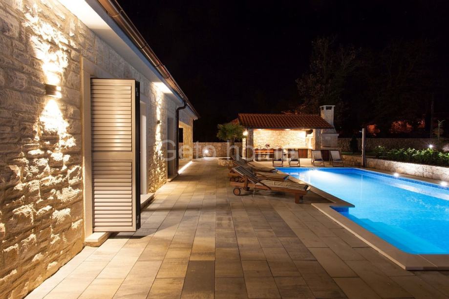 Vila površine 185 m2, rustikalnog vanjskog izgleda te modernog unutarnjeg intrijera sa prekrasnom velikom okućnicom i bazenom.