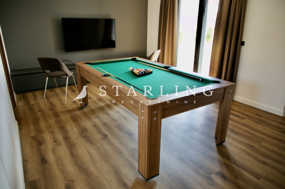 U prizemlju se još nalazi igraonica s biljarskim stolom i PlayStation-om, kupaonica, natkrivena terasa te kotlovnica.