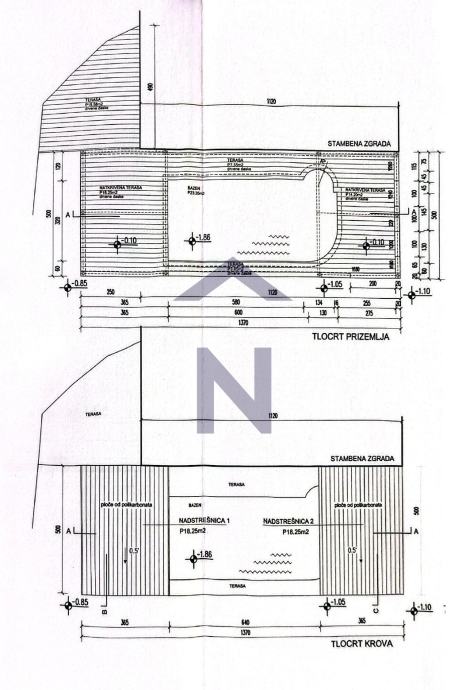 Podruma cca 100 m2: spremište s kotlovnicom i automatikom za bazen.