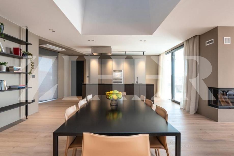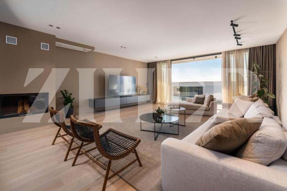 Vila se sastoji od prizemlja i dva kata, ukupno 5 spavaćih soba, svaka s balkonom i kupaonicom, 2 dnevna boravka i 2 kuhinje, ukupne površine 568 m2.