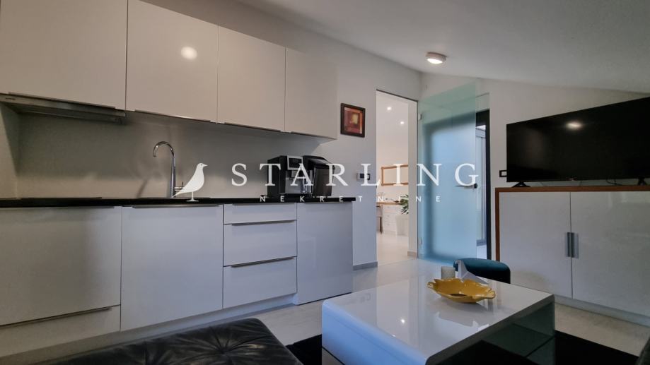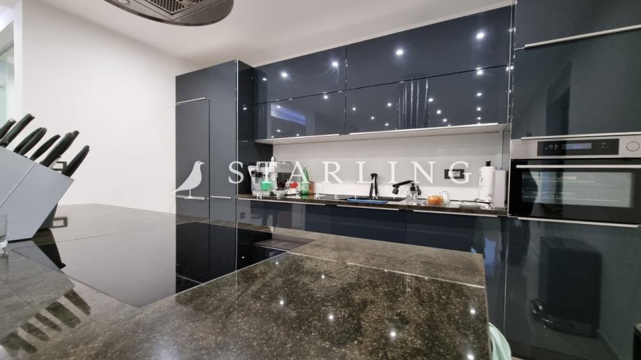 Luksuzno je opremljena svim aparatima i hrastovim namještajem izrađenim po mjeri.