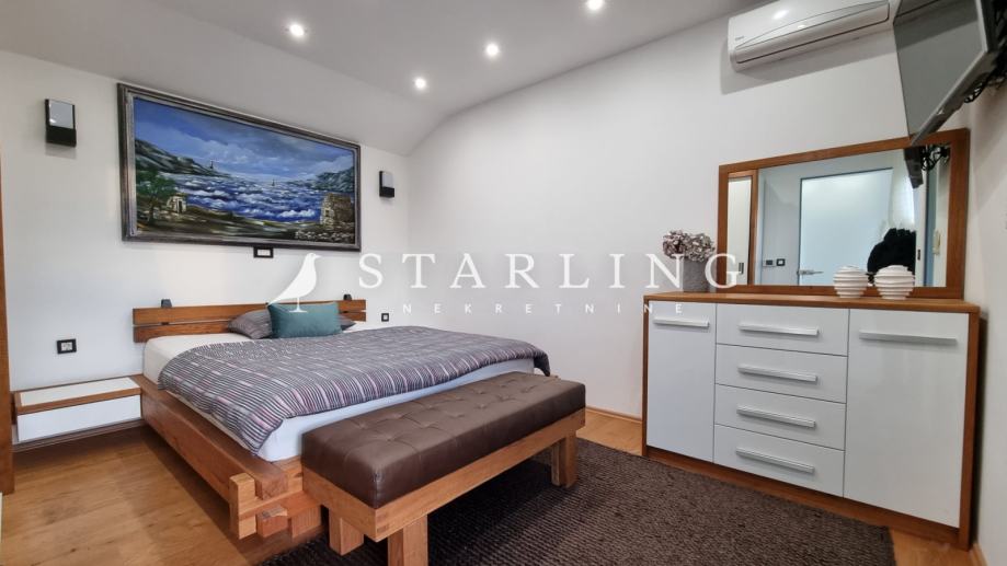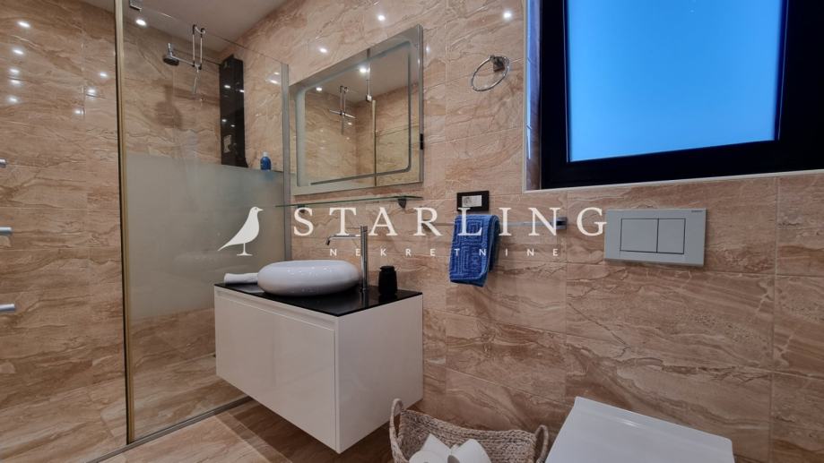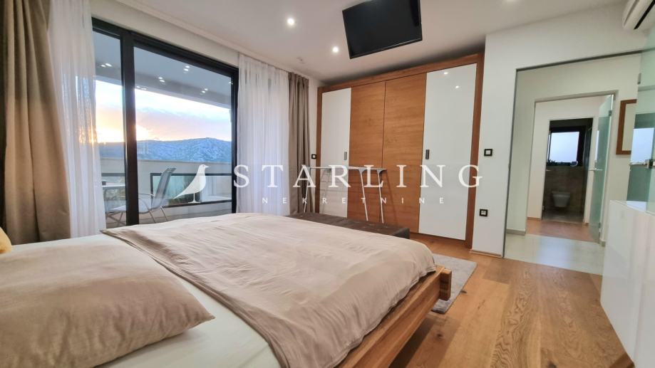 - KATA površine 137 m2: tri spavaće sobe svaka s vlastitom kupaonicom te izlazom na terase s kojih se pruža prekrasni pogled na more, otok Krk te planinski krajolik. Na katu se također nalazi sauna sa staklenom stijenom koja otvara čudesan pogled na Vinodolske obronke.