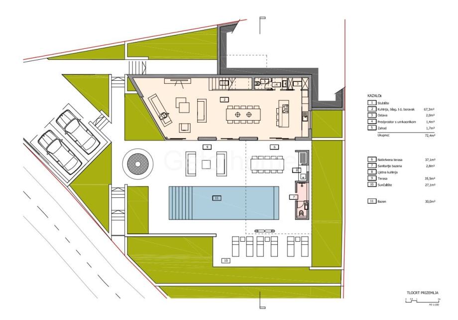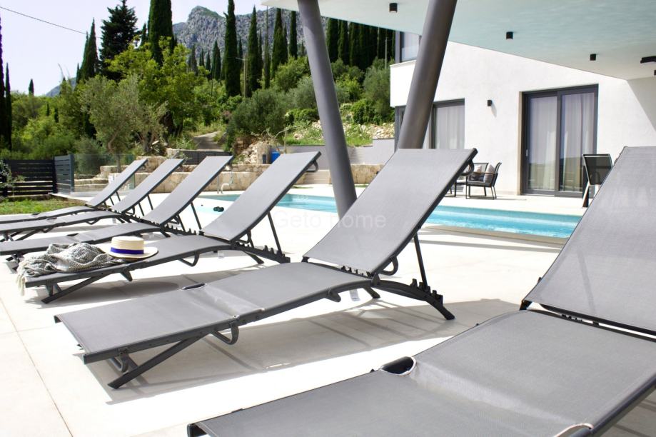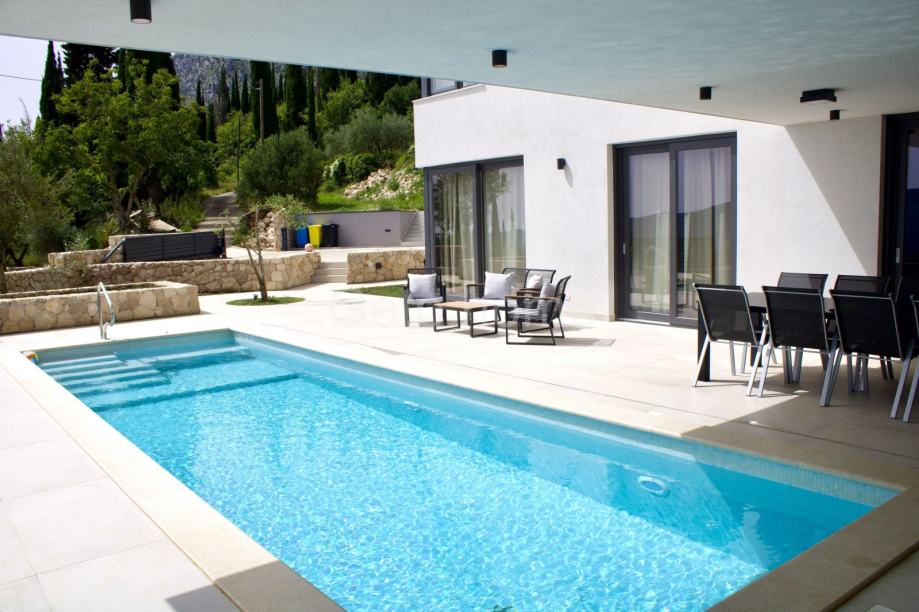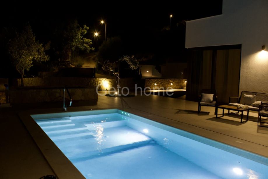 Vila se prostire na površini od 197 m2, s prizemljem i prvim katom. Luksuzna vila ima i natkrivenu terasu od 37,1 m2, ljetnu kuhinju, terasu od 35,5 m2, sunčalište površine 27,1 m2 te grijani bazen i integrirani jacuzzi u bazenu površine 30 m2.