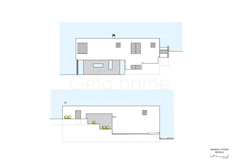 U prizemlju se nalazi dnevni boravak, kuhinja s blagovaonicom i toalet.
