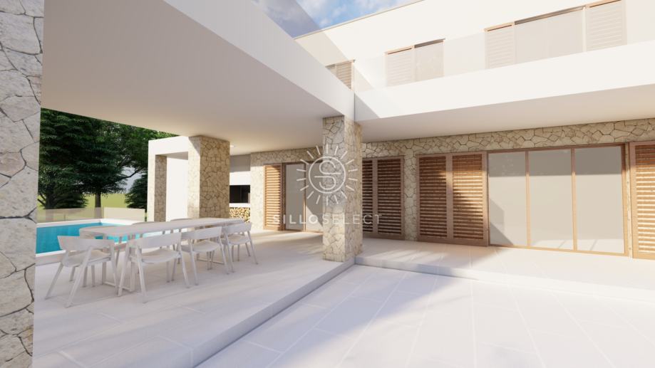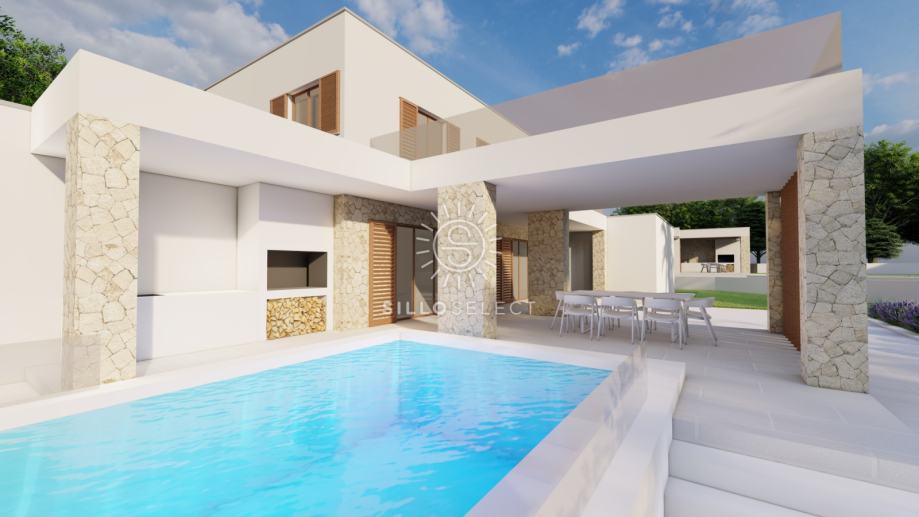 Vanjski prostor: Prostrana terasa koja se neprimjetno spaja s unutrašnjim dijelom, vanjski roštilj, privatni bazen (33,75 m²)