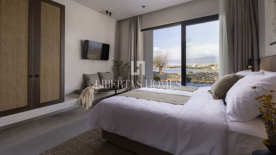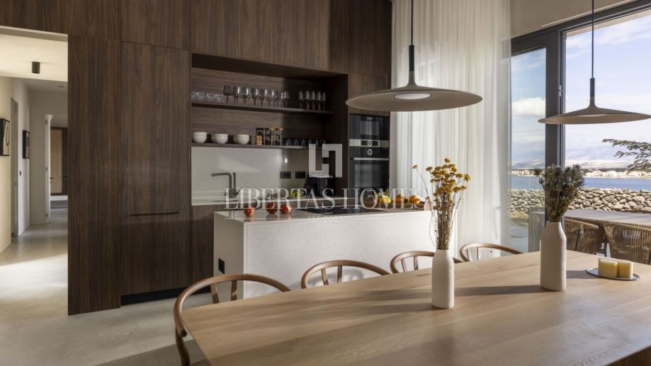 S pažnjom na svaki detalj i diskretnim luksuzom, ova prestižna rezidencija sastoji se od pet zasebnih jedinica, ukupne stambene površine 189 m2, od kojih se dvije mogu koristiti kao studio apartmani ili dodatne spavaće sobe, pružajući svestranost i prilagodljivost za razne potrebe. Tri centralne jedinice povezane su elegantnim staklenim hodnikom, što prostoru daje osjećaj prozračnosti i otvorenosti. Ovaj povezani dio sadrži toalet, spremište, tri prostrane spavaće sobe sa vlastitim luksuznim kupaonicama, te impresivni dnevni boravak s potpuno opremljenom kuhinjom i blagovaonicom, savršenim za uživanje u obiteljskim i prijateljskim okupljanjima.