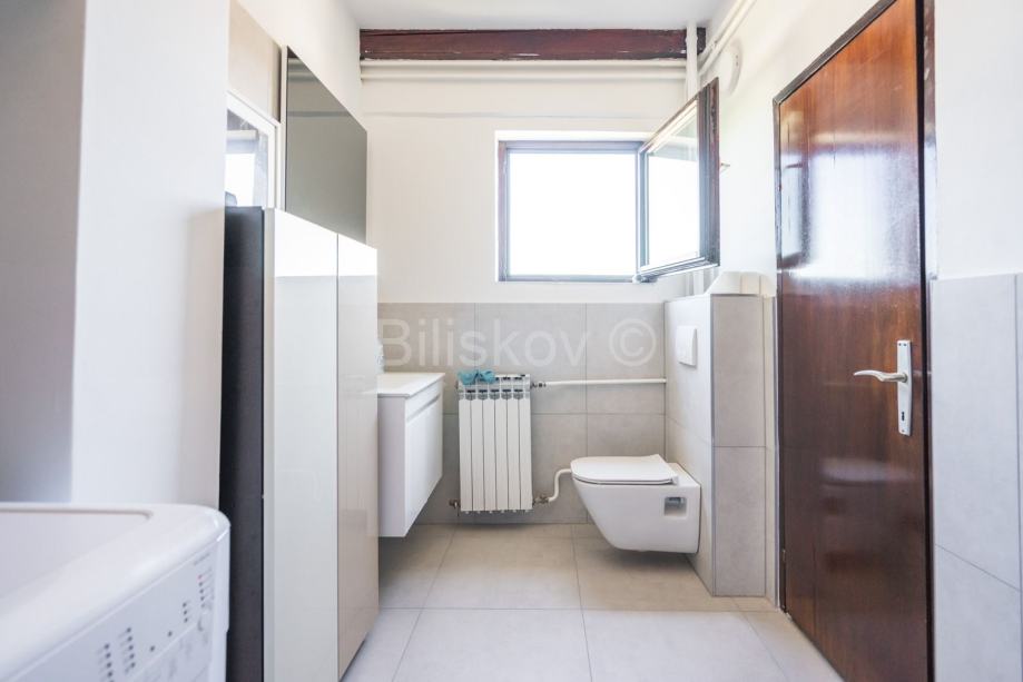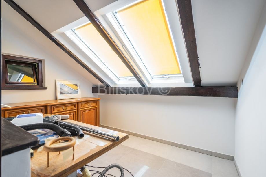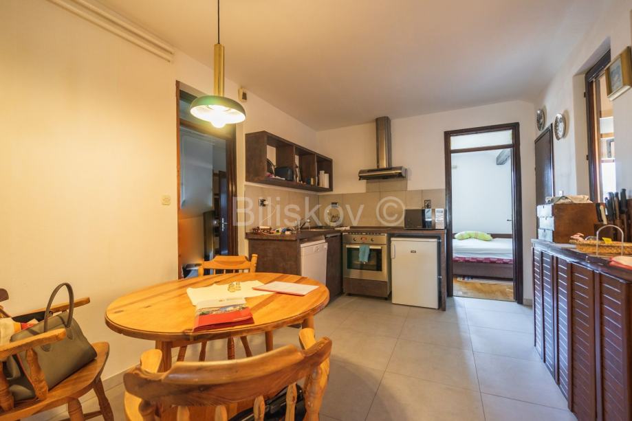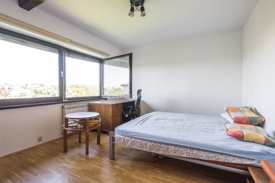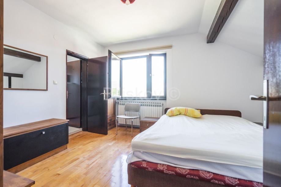 Sjajno iskorišten prostor sastoji se od ulaznog prostora, velikog dnevnog boravka (35,39m2), dvije spavaće sobe, kuhinje sa blagovaonicom, kupaonice, ostave, zatvorene loggie te terase. Stanu pripada dio vrta. Ljepota stana je u tome što je okupan u svjetlu i što sa stana „puca“ prekrasan pogled na sve četiri strane svijeta. Zgrada je uredna, a stubište održavano.