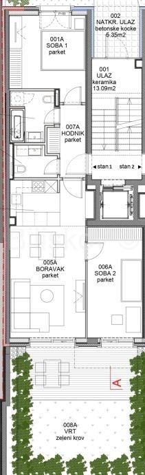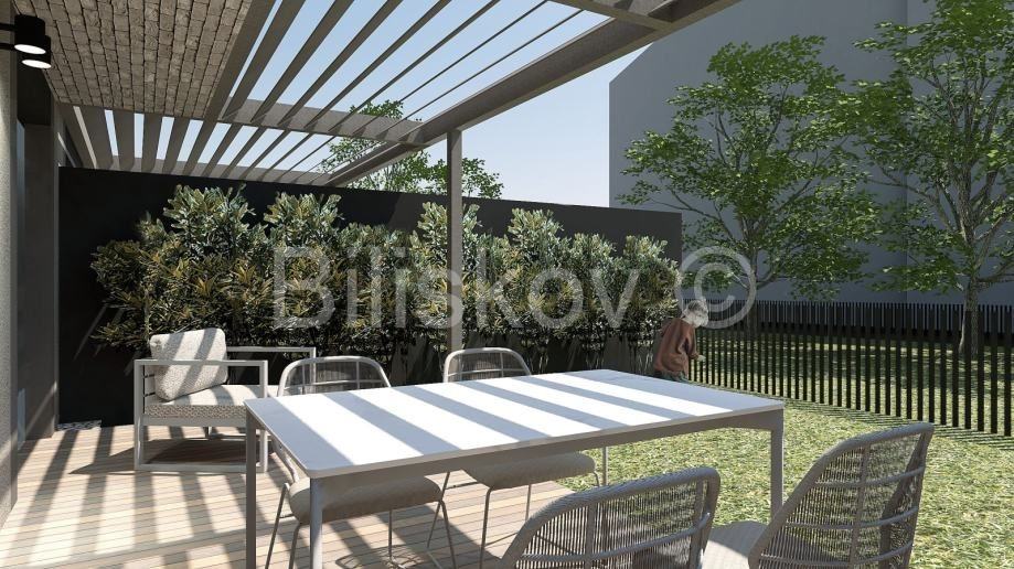 Luksuzan trosoban stan ukupne NKP površine 83,97m2 u prizemlju zgrade koja će biti završena 10/2024.godine.