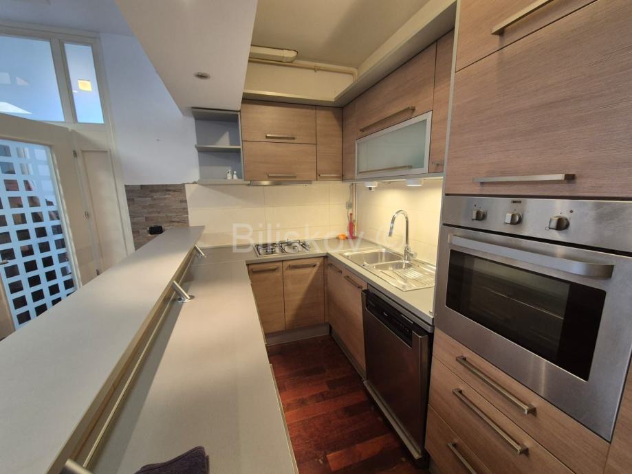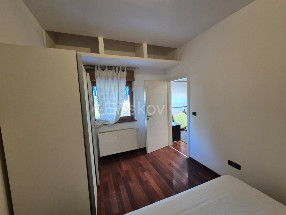 Stan se sastoji od 2 spavaće sobe, dnevnog boravka i kupaone, te terase od 10 m2 i vrta od 20 m2. Odličan raspored.