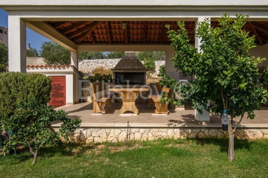 Pažljivo uređena okućnica sa bazenom 56m2, nadstrešnica za boravak na otvorenom i sasvim opremljena ljetna kuhinja površine 44 m2.