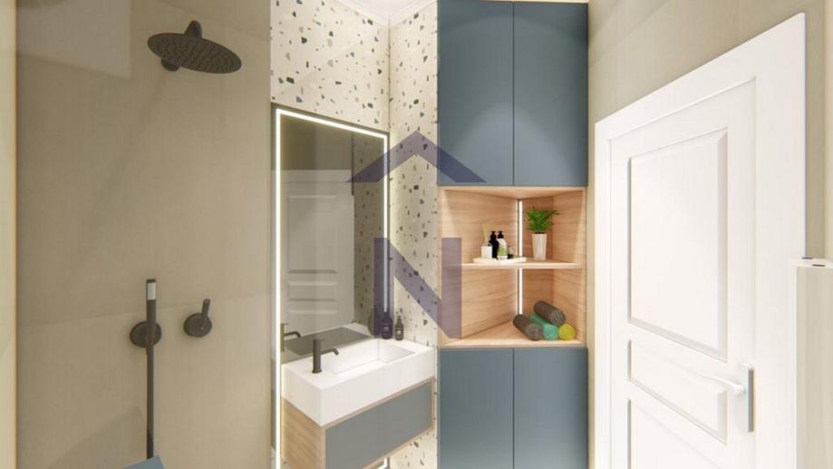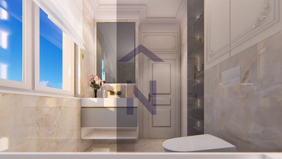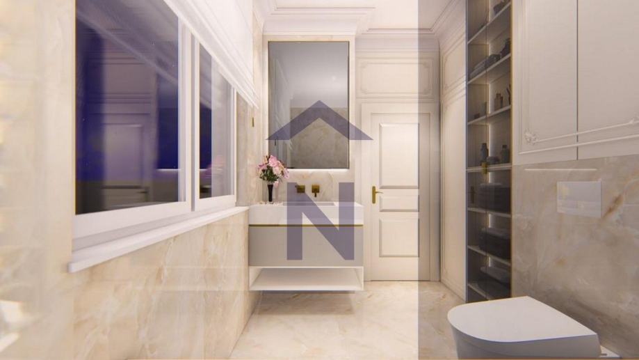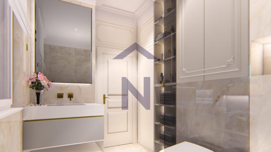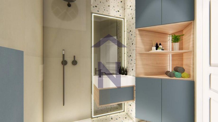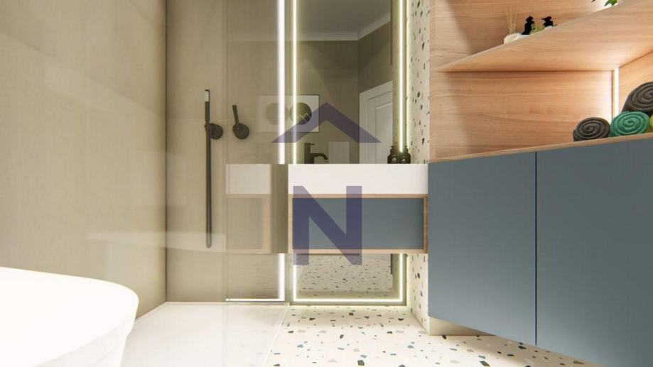 2 dječije sobe, jedna kupaonica, jedna master soba, master kupaonica i dvije terase (površine 13,77m2 i 15,44m2).