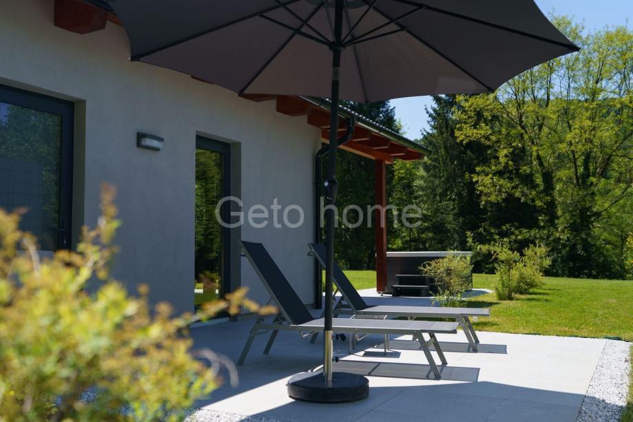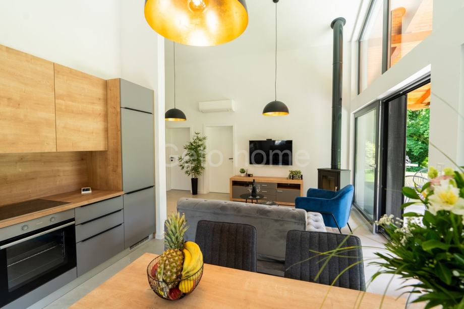 Prodaje se vila neto površine 133,95 m² (93,05 m² s koeficijentima), stambenog prostora 66,25 m2, smještena na izvanrednoj lokaciji samo 4 km od autoceste. Ova moderna i elegantna kuća nudi savršen spoj luksuza i komfora te izvrsnu priliku za investiciju.