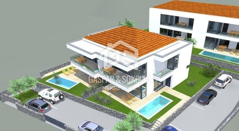 Na prodaju luksuzne kuće smještene na prestižnoj lokaciji na otoku Krku, u mirnom naselju Bogovići. Ove impresivne dvojnice prostiru se na prostranih 160 m², pažljivo dizajnirane kako bi pružile maksimalnu udobnost i vrhunski stil života. Svaka kuća raspolaže s tri prostrane spavaće sobe, svaka s vlastitom kupaonicom, što pruža idealan prostor za obitelj ili goste, uz osjećaj potpune privatnosti.