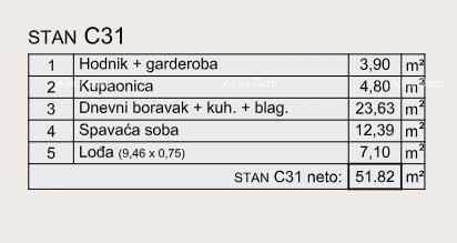 Stan C31, površine 51.82 m2, nalazi se u zgradi C.