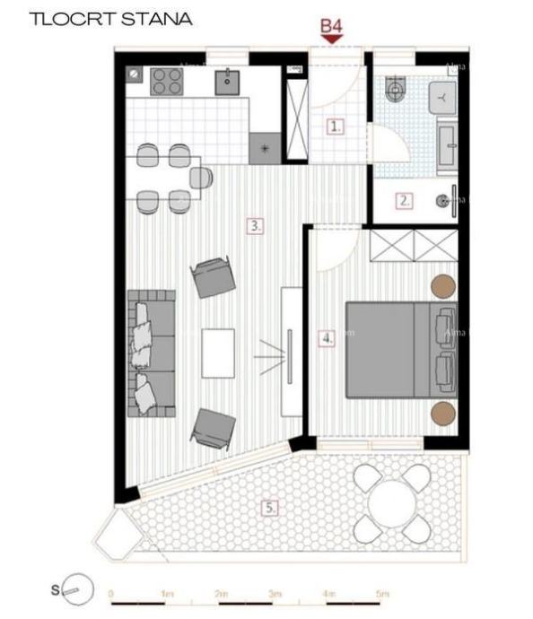Stan B4, površine 51,59m2(neto korisne površine 50.03m2), nalazi se u zgradi B.