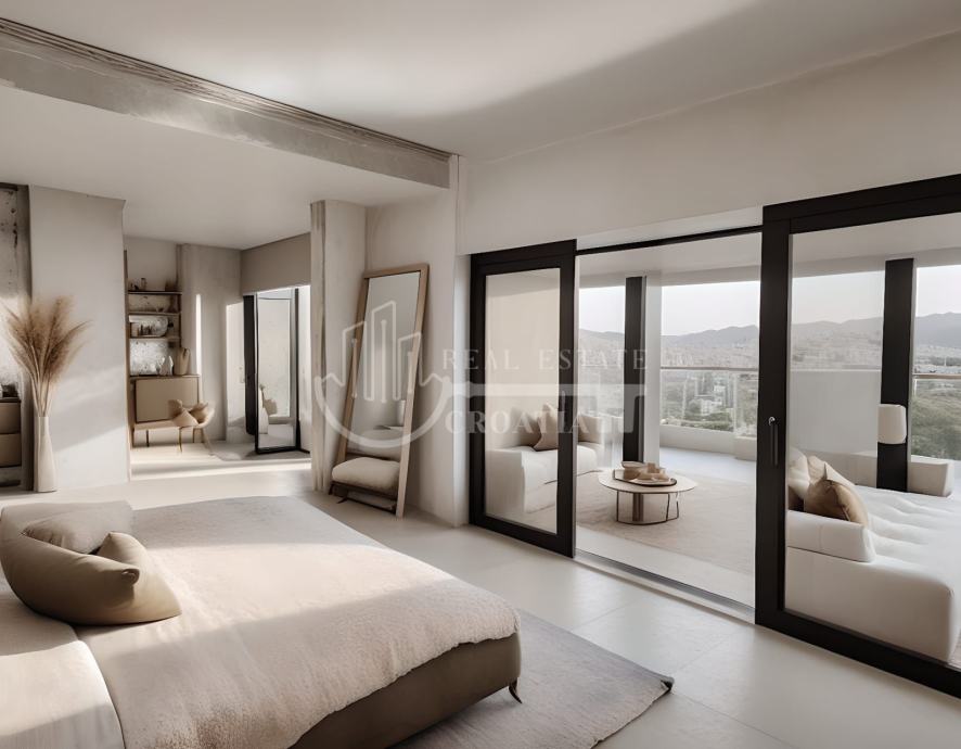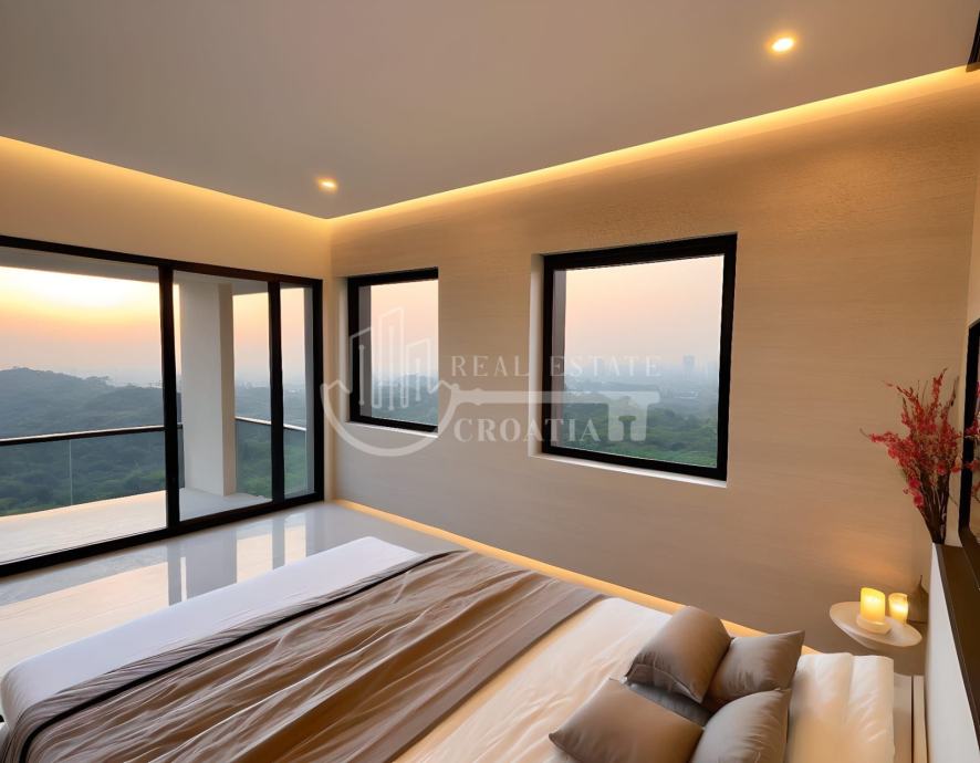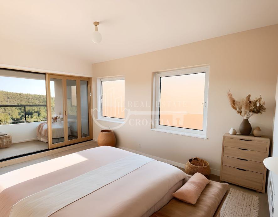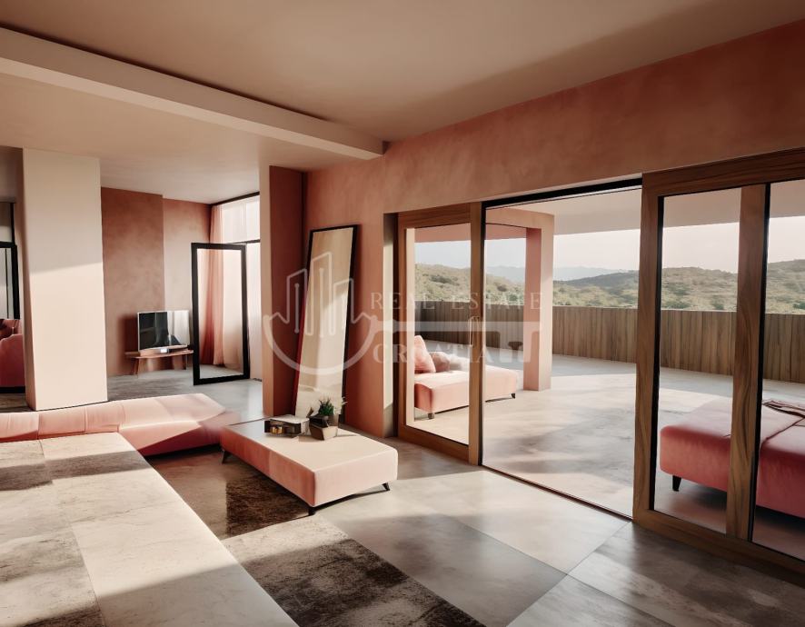 Prostorije i raspored:Ulazni dio3 spavaće sobe (svaka s vlastitom kupaonicom i terasom-podno grijanje u kupaonicama)Prostrani dnevni boravakBlagovaonica i moderna kuhinja Natkrivene i nenatkrivene terase za uživanje u pogledu