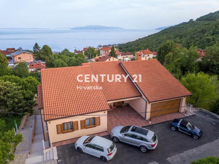 Ova čarobna villa smjestila se iznad Opatije. Proteže se na 1000 m2 stambene površine i 800 m2 okućnice. Sastoji se od ukupno 5 spavaćih soba, 4 velika dnevna boravka, 7 kupaonica, 2 profesionalne kuhinje, 2 terase od kojih svaka ima površinu 120 m2 sa prekrasnim panoramskim pogledom na Kvarner, bazena sa sunčalištem, garaže za dva automobila, 8 parkirnih mjesta, te sadržaja poput saune, biljara i slično.