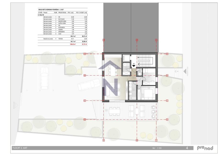 S2 - 1. kat neto površine ukupno 107,75m 2 = stambena površina iznosi 93,74 m2 x 4.700 €/m2Sastoji se od dnevnog boravka, kuhinje , hodnika, radne sobe, 3 spavaće sobe, 2 kupaonice, toaleta, spremišta i terase + VPM 18 m2 (4,5 m2, računato po koeficijentu 0,25) + parkirno mjesto u garaži 19,02 m2 ( 9,51 m2, računato po koeficijentu 0,5) =506.425,00 EUR + 10.000,00 EUR spremište= ukupna cijena 516.425,00 EUR