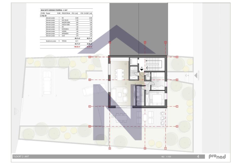 S3 - 2. kat neto površine ukupno 108,45 m2 = stambena površina iznosi 87,37 m2 (65,31 m2 unutarnjeg prostora)