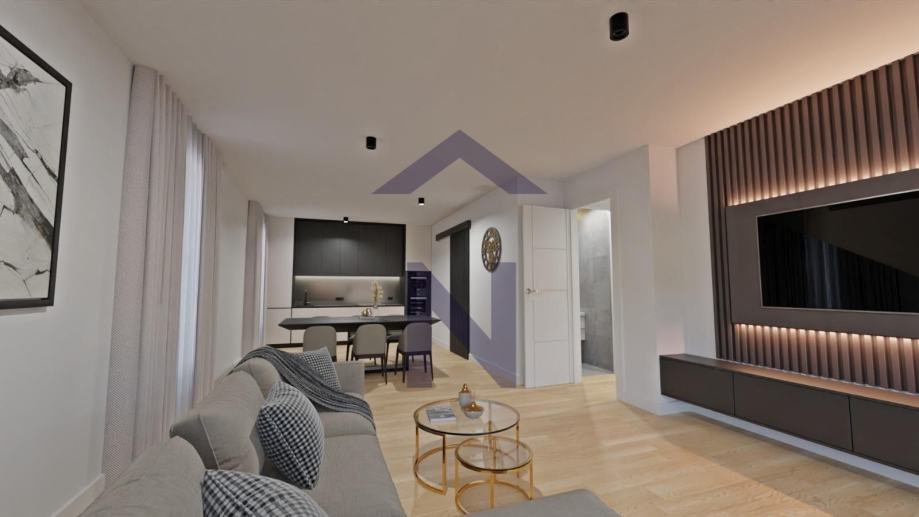 Sastoji se od dnevnog boravka, kuhinje , hodnika, radne sobe, 3 spavaće sobe, 2 kupaonice, toaleta, spremišta i terase + VPM 18 m2 + parkirno mjesto u garaži 19,02 m2 = ukupna cijena 744.575,00 EUR