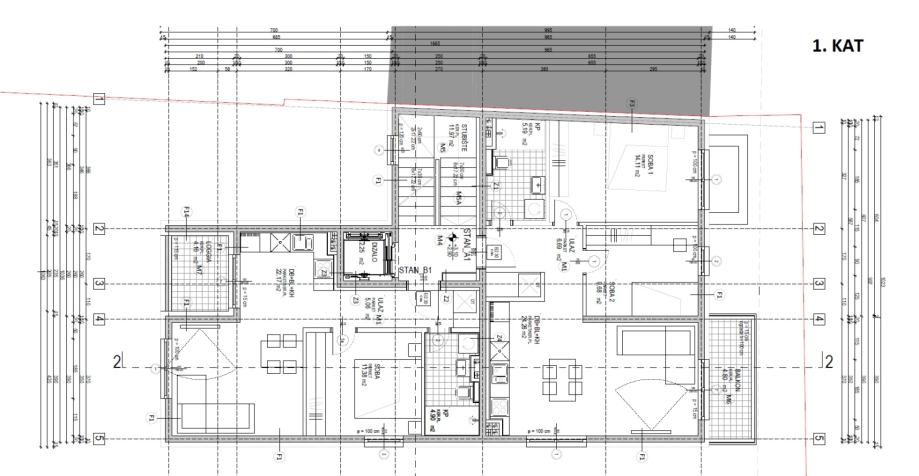 2 spavaće sobe, dnevni boravak sa kuhinjom, kupaonica sa WC-om, hodnik