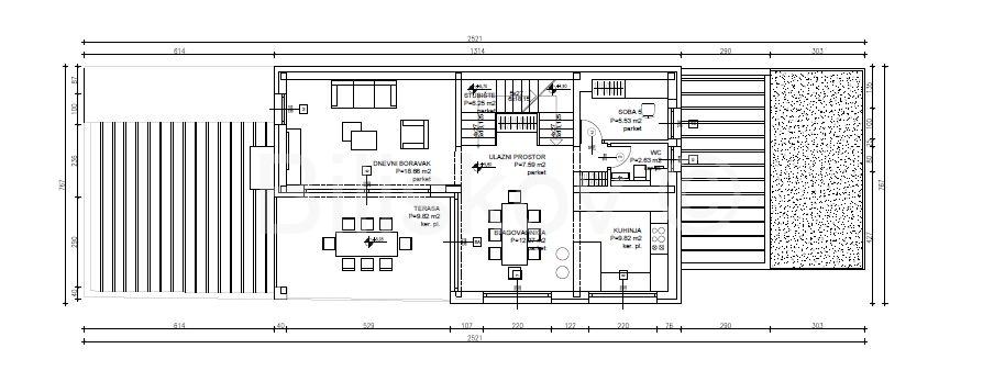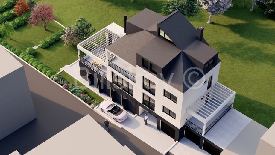 Prostrani dvoetažni peterosobni stan površine 180 m2 na drugom katu i potkrovlju u novogradnji čiji se završetak gradnje očekuje do kraja 2024 godine.