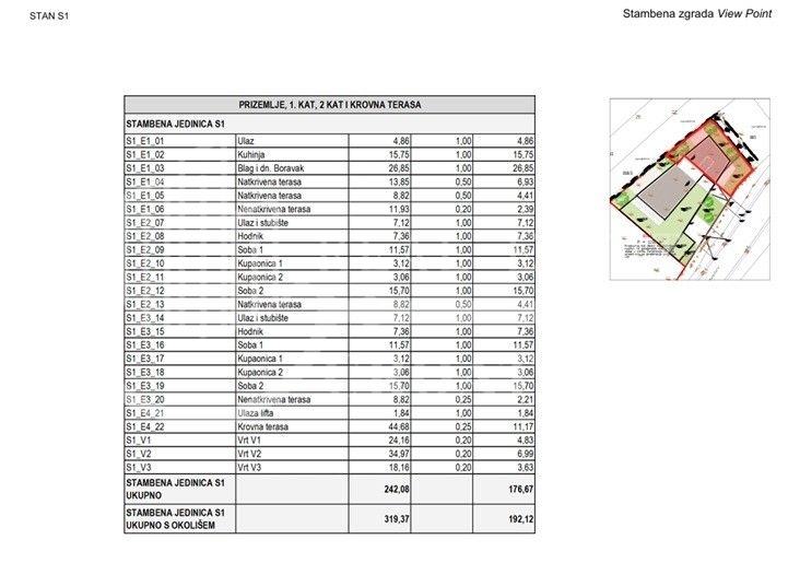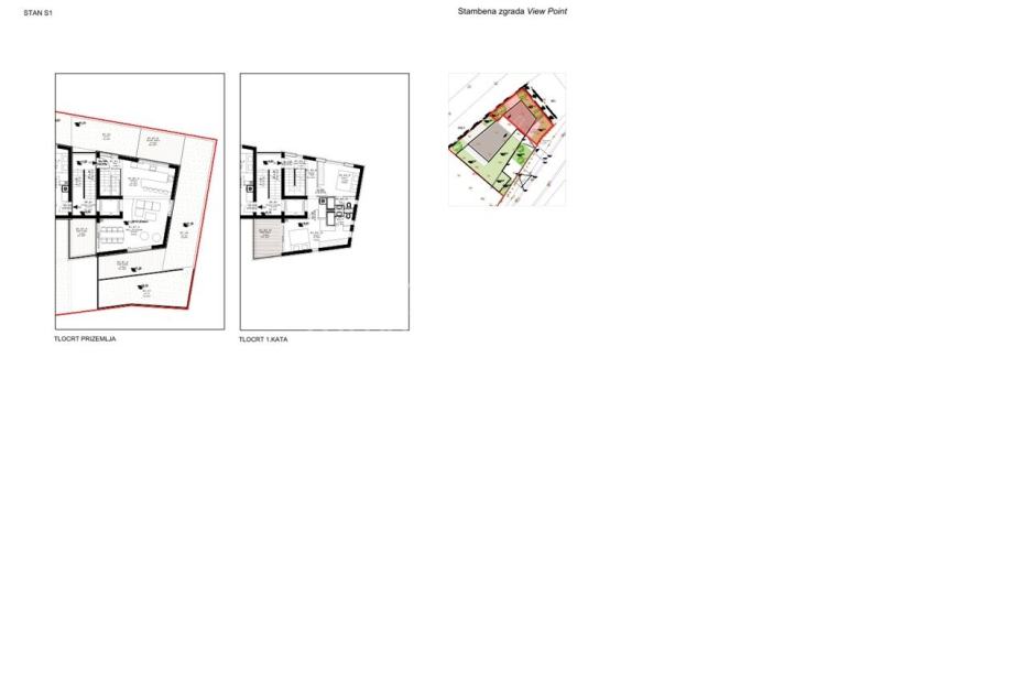 S1 – dvoetažni stan koji se proteže kroz prizemlje, 1. kat i 2. kat, s krovnom terasom na 3. katu.