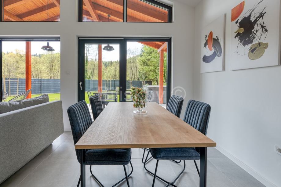 Kući pripada terasa površine 70m2, wellness (sauna), jacuzzi i 3 parkirna mjesta.