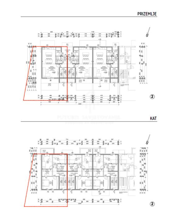 blagovaonica, dnevni boravak, natkrivena terasa, nenatkrivena terasa, ukupne površine: 61,89 m2 i KAT: tri sobe, hodnik i stubište, dvije