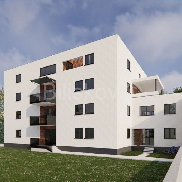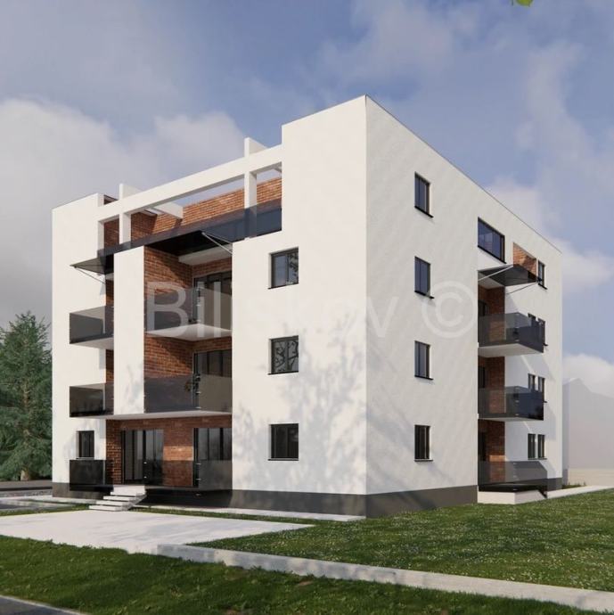 Trosoban stan 65,48 m2 NKP u prizemlju zgrade u izgradnji. Zgrada ima dizalo, planirani rok završetka izgradnje je listopad 2024. godine.