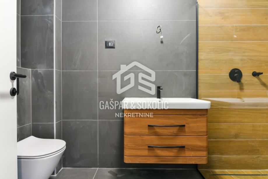 Prodaje se stan u novogradnji s obračunskom površinom od 53,60 m², smješten na prvom katu. Stambena površina stana iznosi 49,50 m². Stan se sastoji od dnevnog boravka, blagovaonice, kuhinje, kupaonice, spavaće sobe te balkona stvarne kvadrature 4 m² (obračunski 0,97 m²).