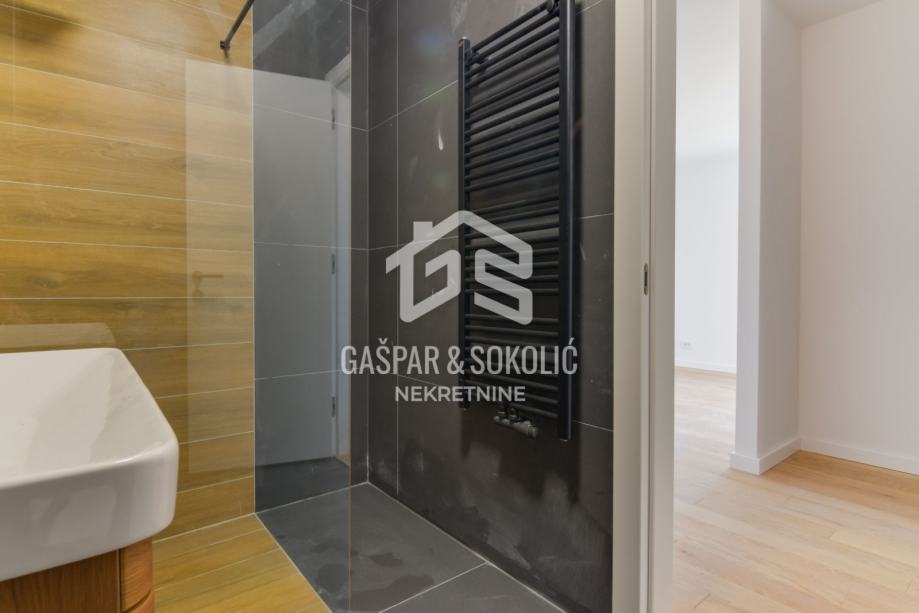 Grijanje je omogućeno putem toplane s vlastitom stanicom na principu plinskog etažnog grijanja. Stan je opremljen hrastovim parketom, keramikom dimenzija 120x60 cm, walk-in tušem, Salamander stolarijom i Door Expert vratima.
