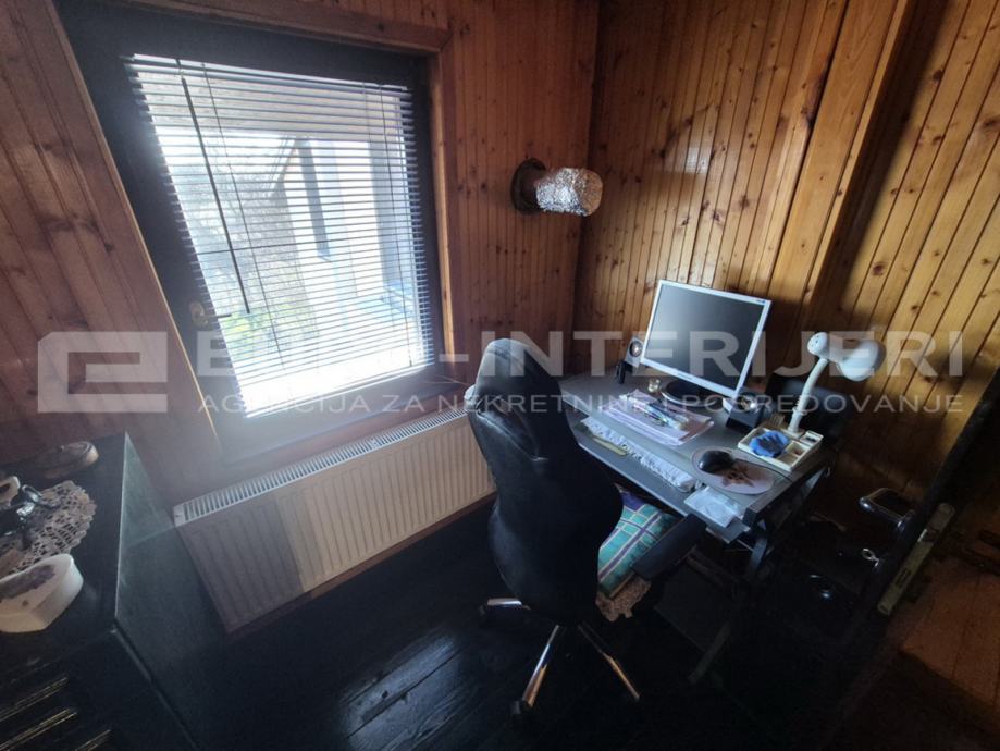 U mirnom obiteljskom naselju prodajemo funkcionalnu samostojeću kuću površine 140 m2 sa 8 pomoćnih objekata (spremišta površina od 20 m2 do 50 m2) na okućnici od 1.135 m2.
