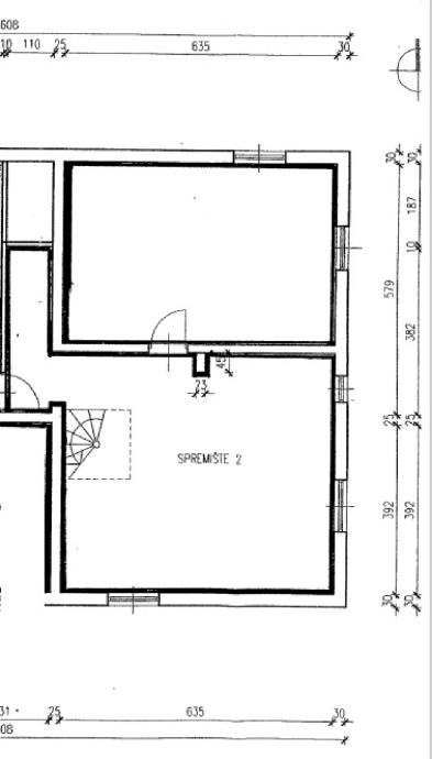 Suterenski dio je prenamijenjena ostava/podrum koju sada čini kuhinja sa blagovaonom, dnevni boravak, kupaonica i dvije sobe. Povezana je sa gornjom etažom spiralnim stepenicama. Prostor je idealan za obrt ili najam jer se može fizički odvojiti od gornje etaže. Suterenski dio je u naravi 64 m2 (po umanjenim koeficijentima 32,63 m2).Oko zgrade je dio vrta koji je zajednički ali koristi samo prizemni stan.