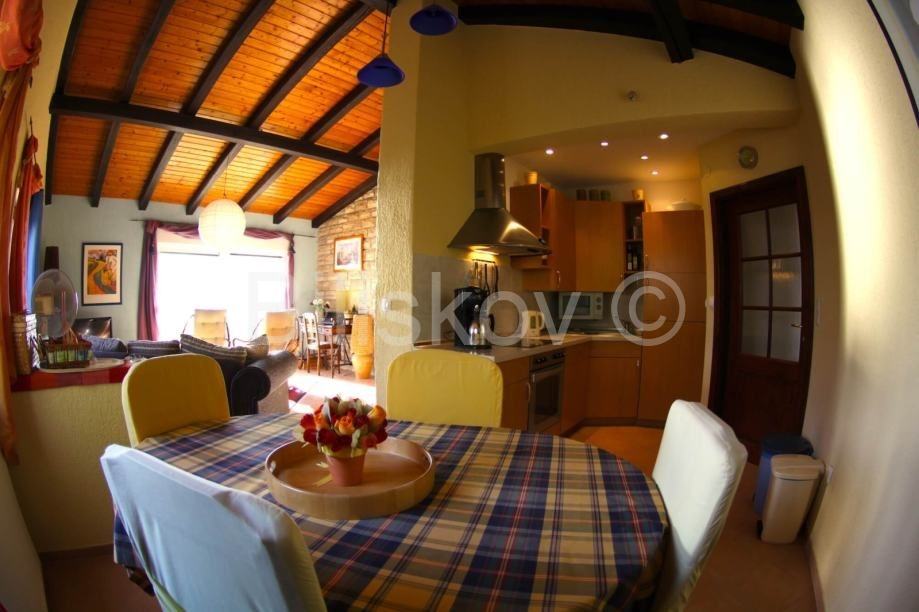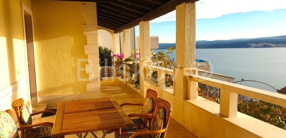 Prekrasna samostojeća kuća udaljena nekoliko kilometara od Omiša.Izgrađena u tradicionalnom dalmatinskom stilu, stanovnicima pruža prekrasan pogled na more koji u budućnosti neće biti zaklonjen.Nekretnina je kaskadne strukture. Na tri etaže nalaze se tri odvojene stambene jedinice, kao i garaža za dva automobila i konoba.U prizemlju i na prvom katu nalaze se dva apartmana koji se sastoje od dvije spavaće sobe, kuhinje s blagovaonicom, dnevnog boravka, kupaonice i terase.U prizemlju se nalazi i skladište/kotlovnica.U potkrovlju se nalazi apartman koji se sastoji od dnevnog boravka, kuhinje s blagovaonicom, kupaonice, spavaće sobe, balkona i prostrane terase sa kamenim roštiljem.Ispred imanja nalazi se veliki vrt prepun mediteranskog bilja, što ovu kuću čini posebno šarmantnom. Moguća je izgradnja bazena.Vila je projektirana tako da se stapa s okolinom. U gradnji su korišteni kvalitetni materijali, svaka soba je klimatizirana, namještena, a postavljeno je i centralno grijanje.Svi apartmani mogu se iznajmiti po vrlo atraktivnim cijenama, preko 120 dana u godini. Ima četiri zvjezdice službene turističke kategorizacije.