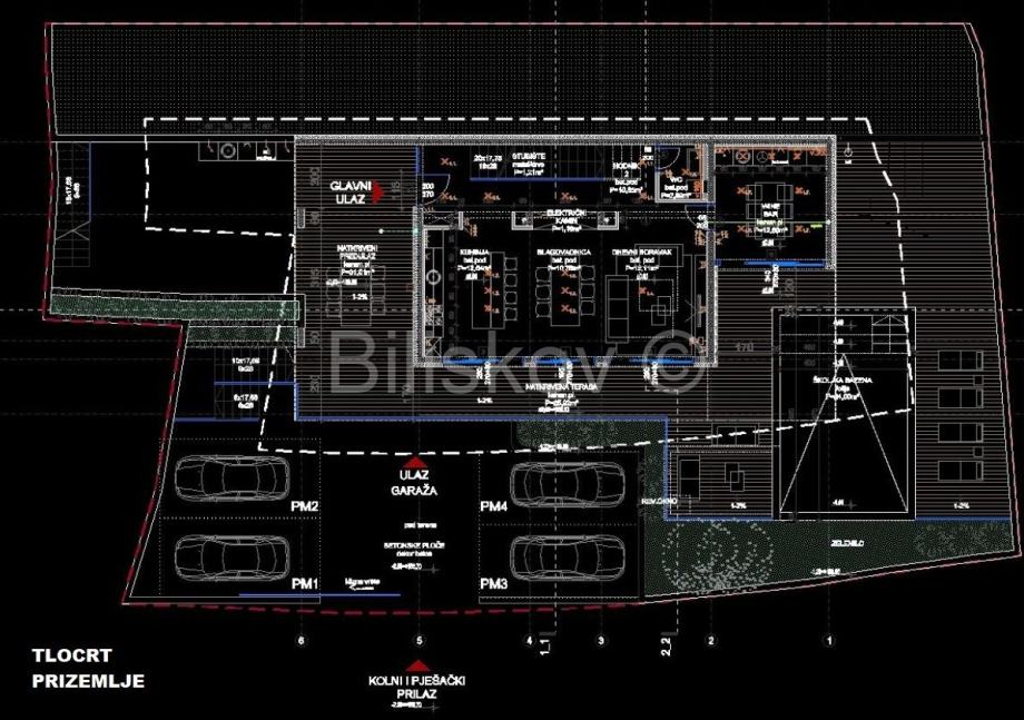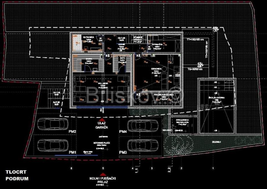 U podrumu se nalaze wellness, sauna, Jacuzzi, kupaonica, spremište, kino dvorana I praonica rublja.
