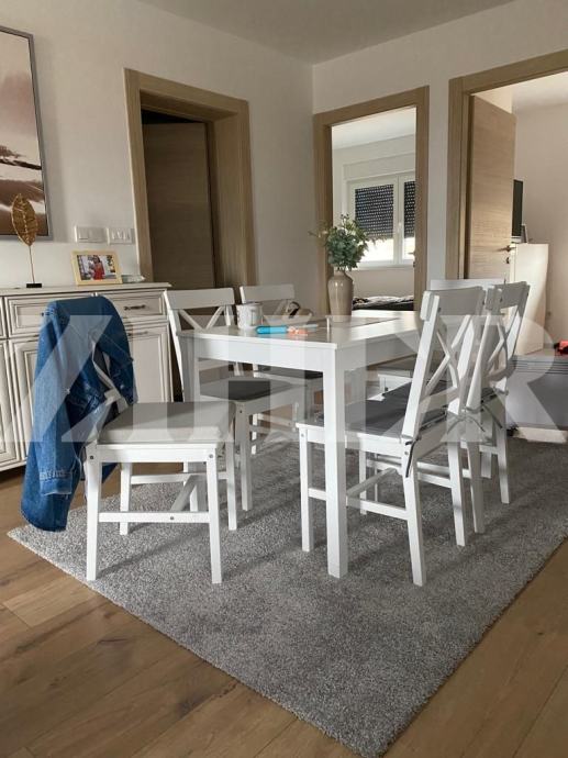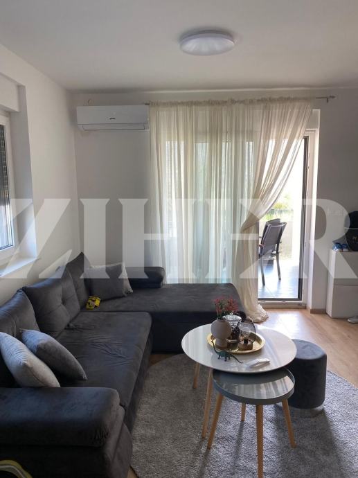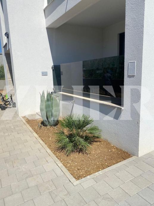 Prodaje se apartman u prizemlju objekta od dvije etaže, koji se sastoji od : dnevnog boravka s blagavaonicom i kuhinjom, dvije spavaće sobe i kupaonice ukupne površine 47 m2. Iz dnevnog boravka se izlazi na terasu od 10 m2, a s terase na vrt od 98 m2.