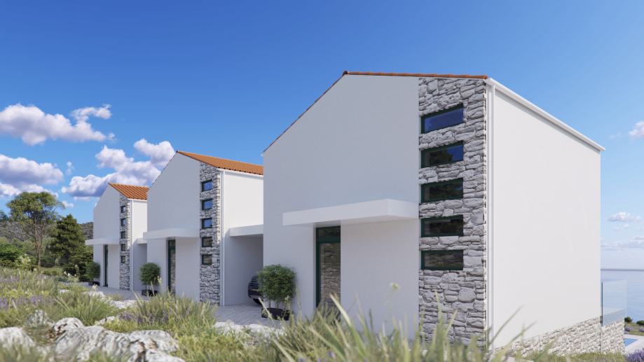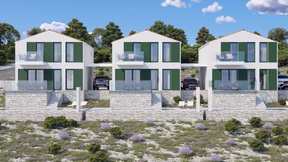 Svaka od tri kuće/vile u nizu sa pripadajućim bazenom i natkrivenim parkirnim mjestom prodaje se zasebno.