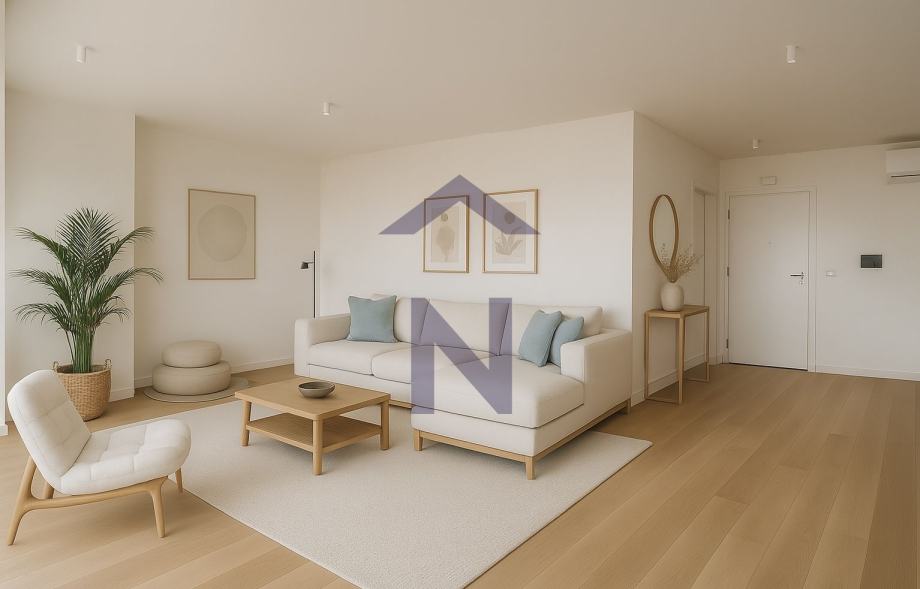 Die Wohnung besteht aus einer Eingangshalle, Bad, zwei Schlafzimmer, ein Arbeitszimmer, Küche, Esszimmer und Wohnzimmer, Flur, interne Treppe und WC, mit einer Gesamtwohnfläche von 96,60m2.