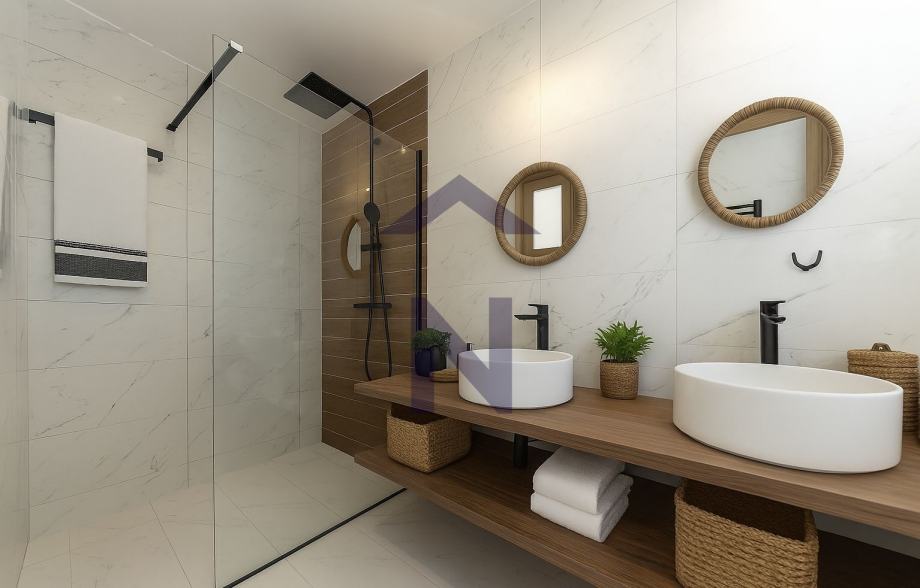 Die Wohnung verfügt außerdem über eine überdachte Loggia mit Meerblick, die vom Wohnzimmer aus zugänglich ist, mit einer Fläche von 16,10 m2 und eine nicht überdachte Dachterrasse mit einer Fläche von 93,50 m2 mit freiem Blick auf das Meer und einem Jacuzzi.