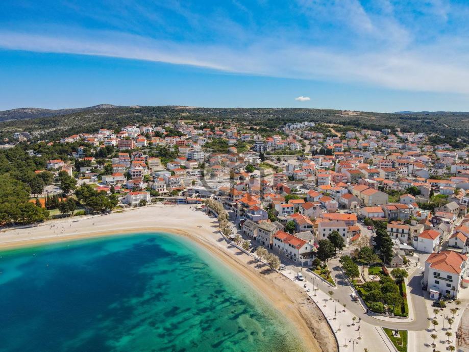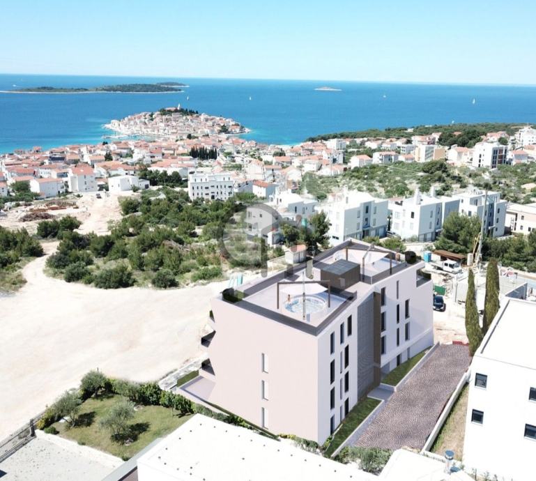 U prodaji je ekskluzivna moderna stambena zgrada u izgradnji, smještena na atraktivnoj lokaciji u Primoštenu, svega 750 metara zračne udaljenosti od mora, plaže i centra mjesta. Ovaj suvremeni projekt osmišljen je kako bi ponudio maksimalnu udobnost i kvalitetu života, bilo da se stan koristi za stalno stanovanje, kao drugi dom ili kao investicija za turistički najam.Zgrada se sastoji od više luksuznih dvosobnih i jednosobnih stanova raspoređenih kroz nekoliko etaža. Svakom stanu pripada vlastito garažno parkirno mjesto te spremište, što osigurava dodatnu praktičnost. Objekt je opremljen liftom koji povezuje sve katove, uključujući garažu, čime je omogućena potpuna pristupačnost za sve dobne skupine.Stanovi su orijentirani prema jugu, što im osigurava obilje prirodnog svjetla tijekom cijelog dana. Velike terase s djelomičnim natkrivanjem pružaju pogled na more, stvarajući savršen prostor za opuštanje i uživanje u mediteranskom ambijentu.Projekt se ističe vrhunskom opremom i pažljivo biranim materijalima. Ugrađena je aluminijska stolarija s termoizolacijskim staklom i električnim roletama, podno grijanje u kupaonicama, protuprovalna i protupožarna vrata te protuklizna keramika u stanovima i na terasama, uz mogućnost izbora uzorka. Sve prostorije su klimatizirane putem sustava skrivenog u spuštenim stropovima, a moderna LED rasvjeta, kako unutarnja tako i vanjska, dodatno naglašava kvalitetu interijera.Posebna pažnja posvećena je energetskoj učinkovitosti i infrastrukturi. Zgrada ima termo fasadu od kamene vune debljine 10 cm, energetski učinkovitu rasvjetu i opremu, a na svim garažnim mjestima predviđena je priprema za ugradnju električnih punionica.Lokacija objekta omogućuje brz i jednostavan pristup svim važnim sadržajima. Plaža i centar Primoštena udaljeni su svega nekoliko minuta hoda, marina Kremik nalazi se na oko 2 kilometra, dok su Šibenik i zračna luka Split udaljeni 25, odnosno 32 kilometra.Zgrada je trenutačno u fazi izgradnje, a završetak radova i mogućnost useljenja planirani su za kolovoz 2026. godine. Ova luksuzna novogradnja predstavlja rijetku priliku za kupnju vrhunskog stambenog prostora na jednoj od najpoželjnijih lokacija jadranske obale.Slobodni stanovi na trećem katu: Stan D1- površina 145,87 m2. Stan se sastoji od ulaznog prostora, tri prostrane spavaće sobe, tri kupaonice te otvorenog dnevnog prostora koji povezuje kuhinju, blagovaonicu i dnevni boravak, pružajući ugodan ambijent za svakodnevni život. Stanu pripada parkirno mjesto u garaži te parkirno mjesto na otvorenom. Cijena: 790.000,00 EURStan D2- površina 123,13 m2. Stan se sastoji od ulaznog prostora, tri prostrane spavaće sobe, dvije kupaonice te otvorenog dnevnog prostora koji povezuje kuhinju, blagovaonicu i dnevni boravak, pružajući ugodan ambijent za svakodnevni život. Stanu pripada parkirno mjesto u garaži te parkirno mjesto na otvorenom. Cijena: 670.000,00 EUR