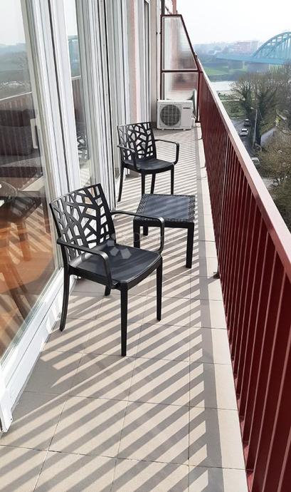 Iz dnevnog boravka i veće spavaće sobe može se izaći na balkon površine 9 m2, koji je idealan za jutarnju kavu ili večernje druženje s obitelji i prijateljima. Prekrasan je pogled na zapadni dio grada, Jarun, Savski most i Savski nasip. Manja spavaća soba ili ured i kuhinja orijentirani su sjeverno i imaju pogled na Katedralu.