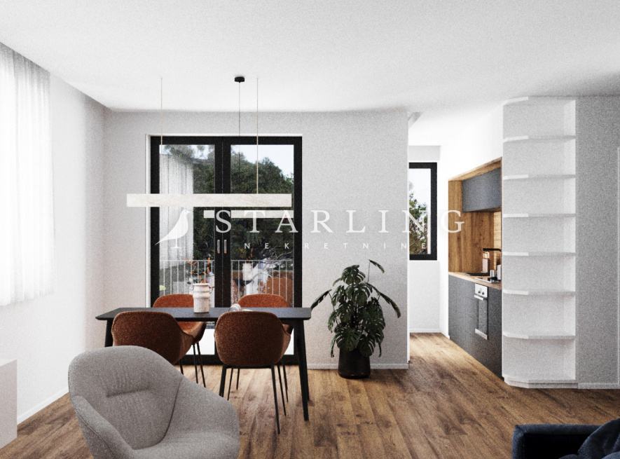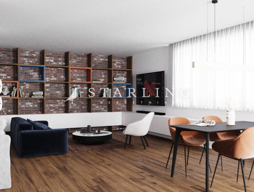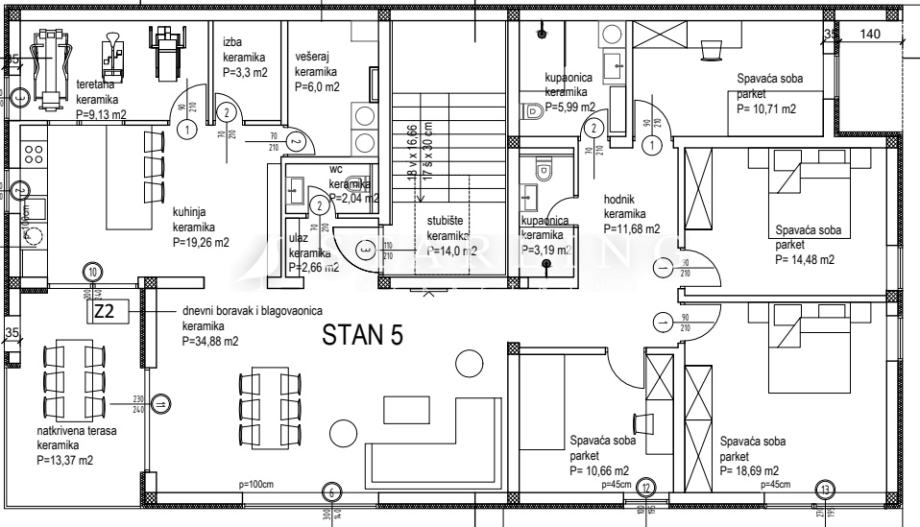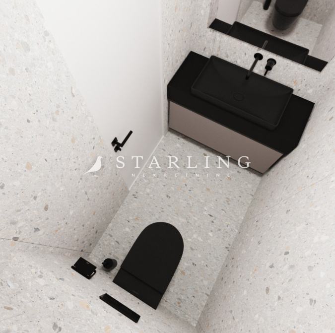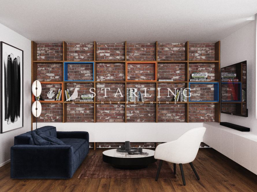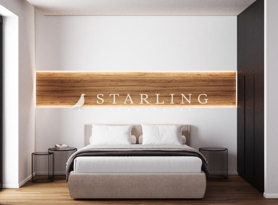 Stan se sastoji od prostranog dnevnog boravka, kuhinje i blagovaonice. Iz dnevnog boravka imamo direktan pristup prema natkrivenoj terasi. Stan ima tri komforne spavaće sobe, prostrane dvije kupaonice ,gostinjski toalet, vešeraj i teretanu. Posebna prednost ovog stana je panoramski pogled na more.